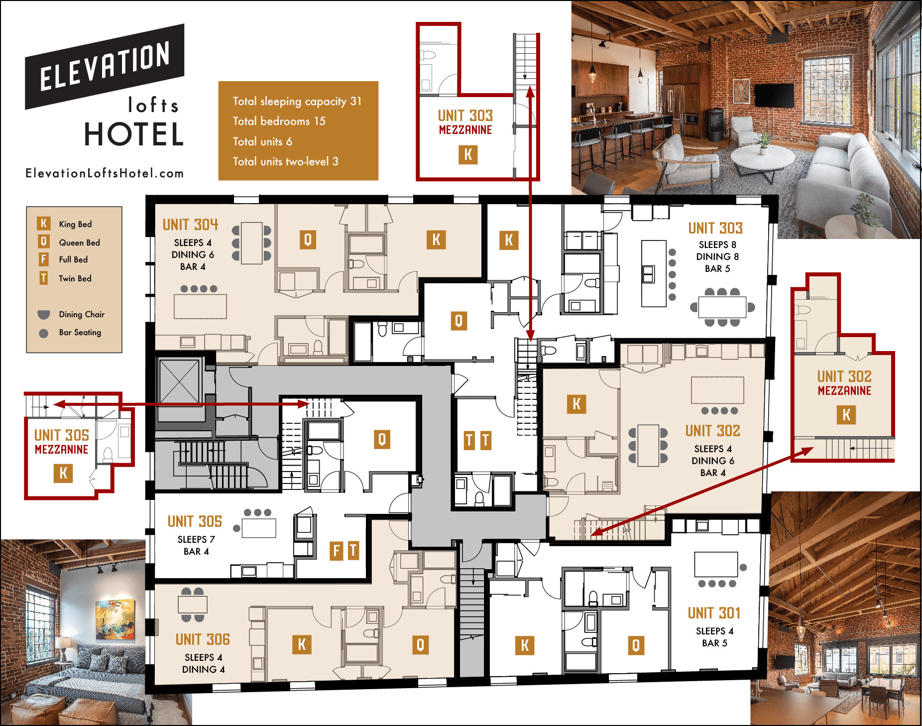 From intimate executive retreats to full-property buyouts for 31 guests, Elevation Lofts Hotel offers a refined alternative to traditional group lodging in Asheville.